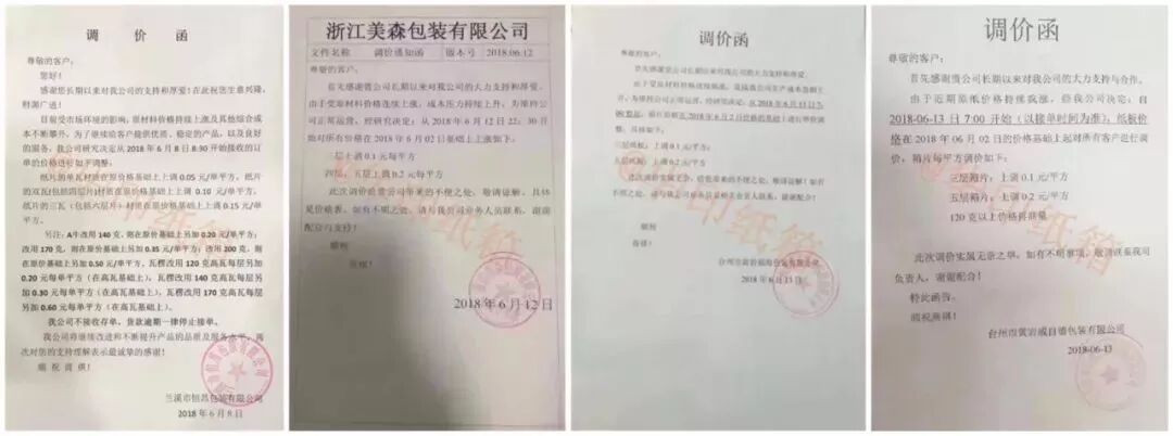 查阅相关资料显示,5月以来,包装纸市场可谓是经历了一场“浩劫”,各路涨价函纷至沓来。6月2日,浙江省大批纸板厂涨价,6月7日,湖北省数家纸板厂涨价3%-5%。6月8日-13日,涨价范围迅速扩大,包括浙江、山东、湖北、湖南、安徽、福建、江苏。